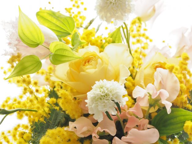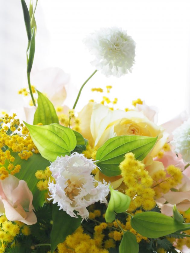 ミモザがかなりのボリュームで、他のお花を挿していくのが大変だったようです。