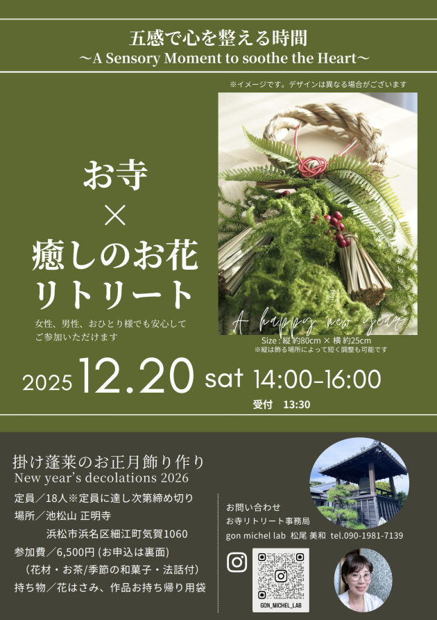 細江町気賀の池松山 正明寺でお正月飾りのワークショップを行います(浜松市浜名区細江町気賀)