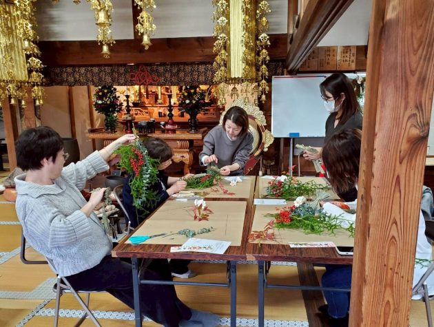細江町の正明寺で行ったお正月飾りのワークショップ。10代から70代まで幅広い年齢層の方々が参加くださいました。