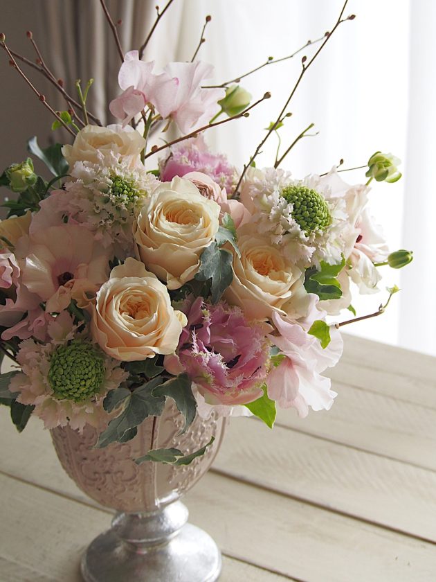 春を待っていたお花たちが咲きはじめる明るく華やいだ季節になってきましたね。3月も春のお花を軽やかにアレンジしたいと思っています。