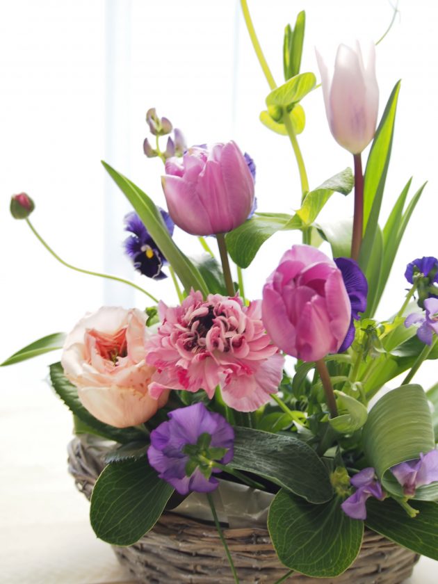 お部屋が暖かいので、チューリップが開き出し、アレンジしながらお花が変化しく様が楽しめます。