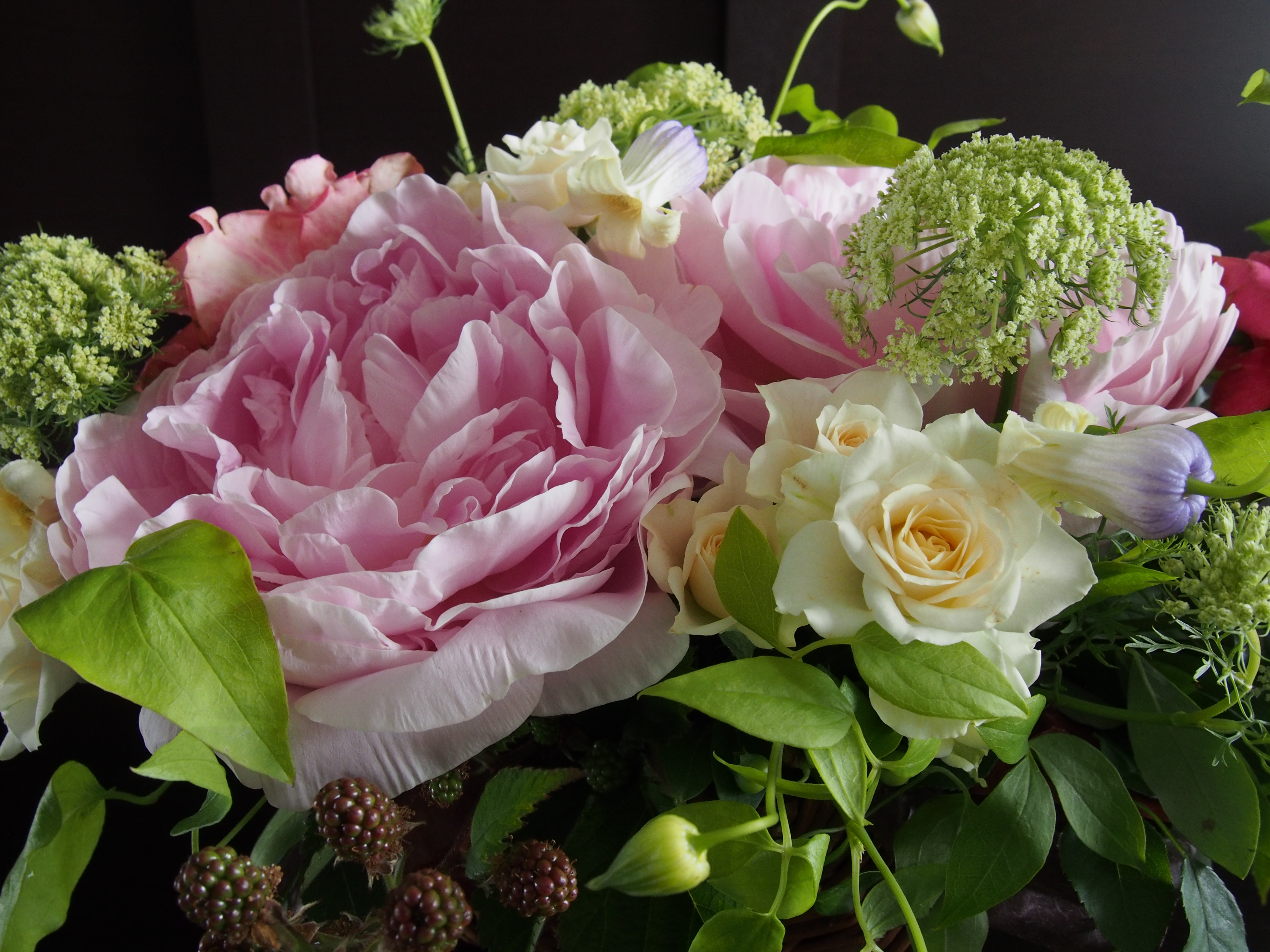 カフェリシェすさんでのワークショップはデルフィニュームに加え、アジサイを入れてみました。 香りの効果も実感していただけるようマウンテンミン...